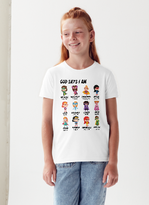 For the girls who love the ultimate superhero, this tee shows the sweet ways that she is special to the Lord. Wear it to church or youth group, or anywhere and everywhere you go.