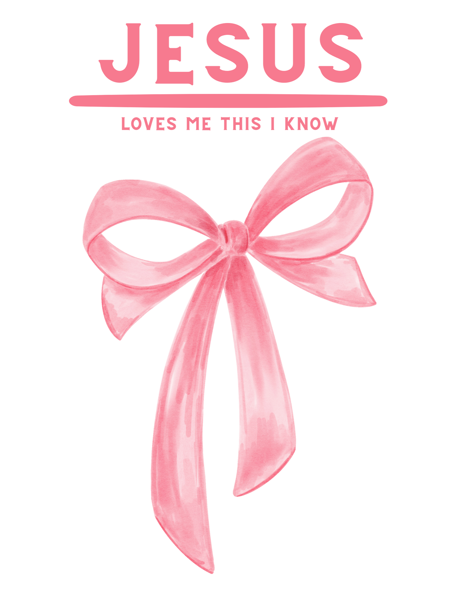 Jesus Loves Me with a pink coquette bow.